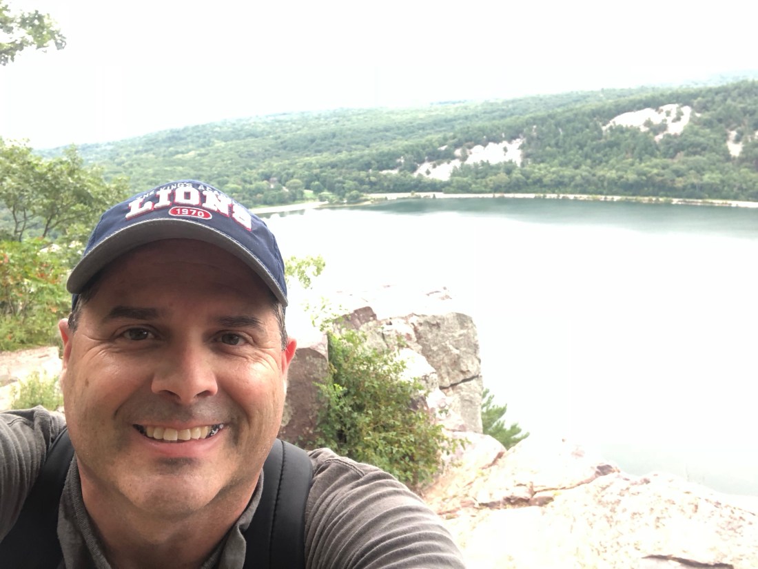 Devil’s Lake is a scenic lake flanked by two high bluffs on either side. Supposedly it was an ancient river that got covered, then clogged, by one of those glaciers. I am a fan of geology, but I tend to just ignore the time they attach to everything. Millions of years is a long time and I am skeptical of anyone who tells me they knew what was going on back in the way back when.