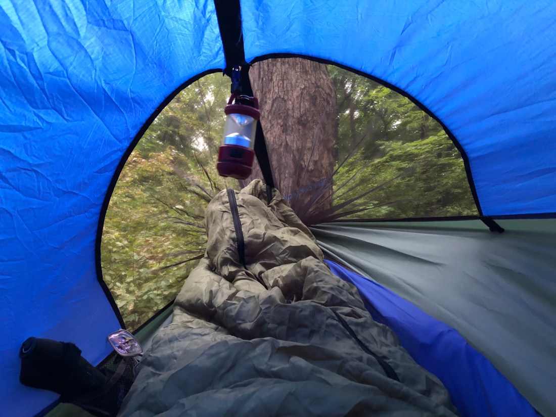 I spent the night in my hammock tent sleeping very little. I don’t sleep well at home and even worse on the road. I am sleeping better in our camper these days, but that’s for another post.