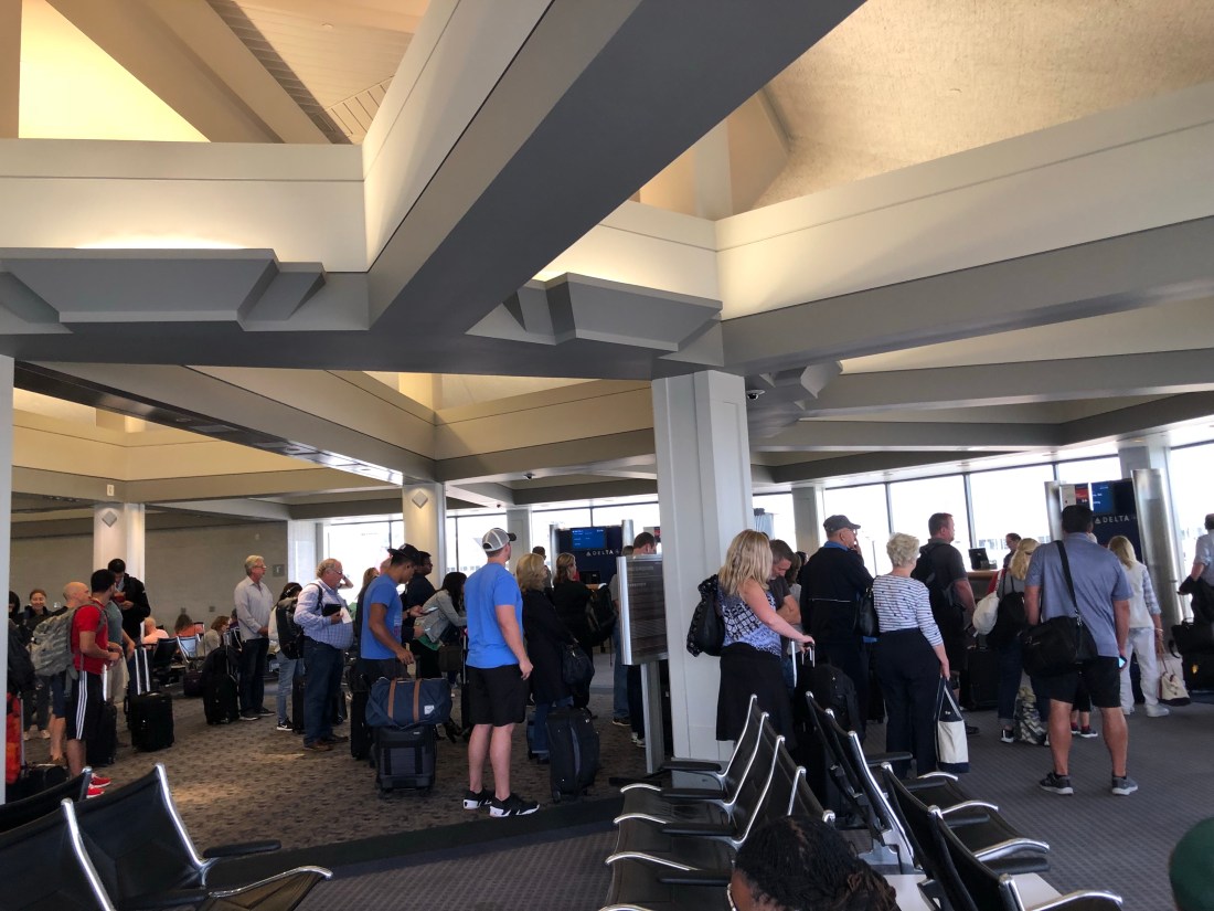 [I interrupt this post for a public service announcement. You do not need to surround the gate entrance like it’s a bread line. They will call your zone and you can get on. The plane will not leave without you. Sit down and relax.]